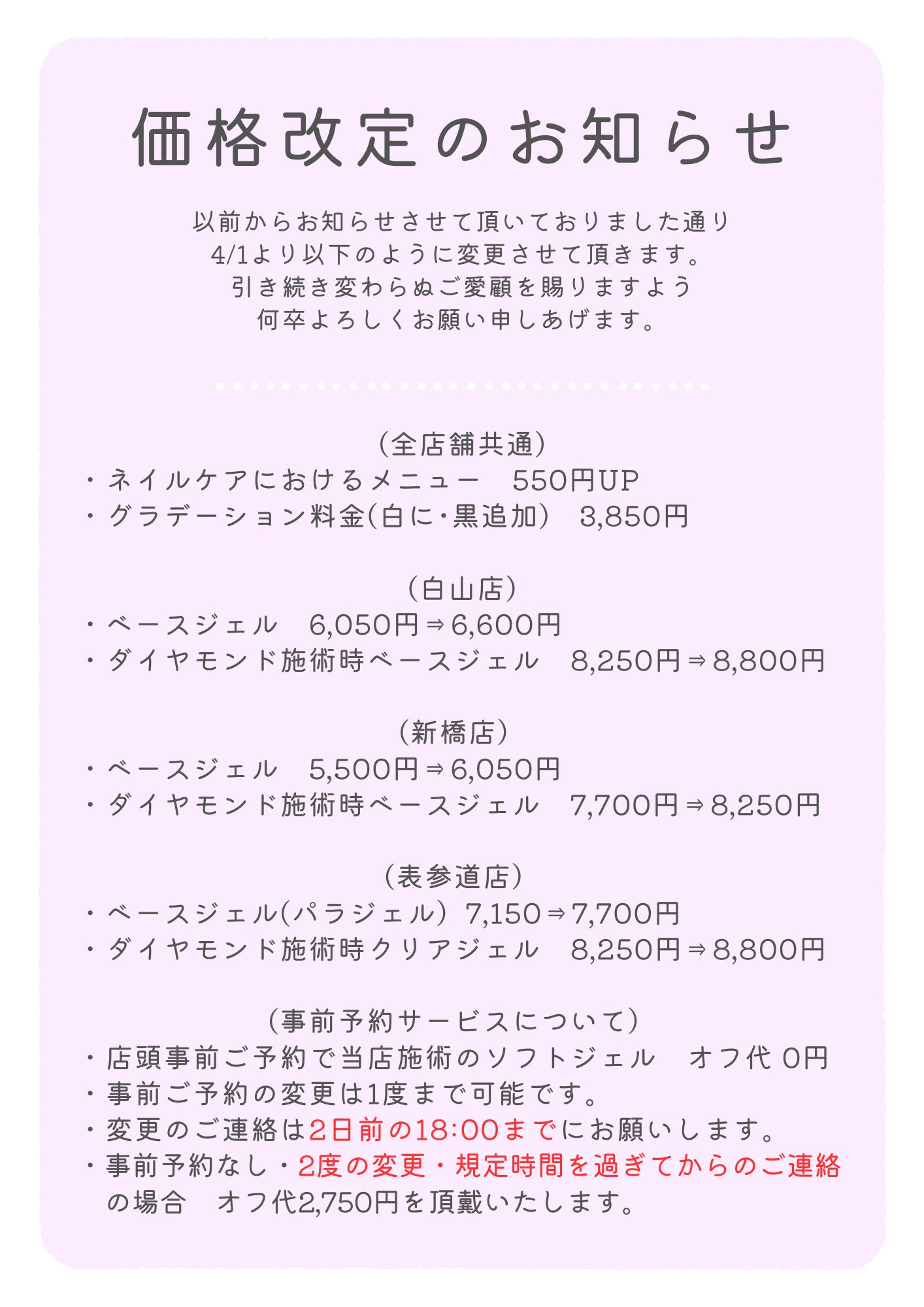 4/1価格改定のお知らせ