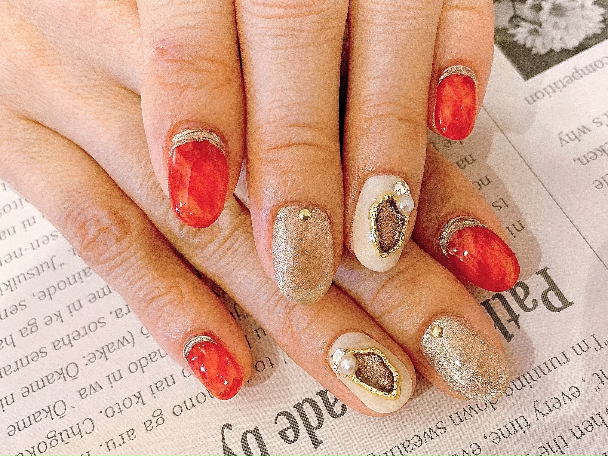 これからの季節ぴったりでクリスマスネイルには是非お試し頂きたいお色♪