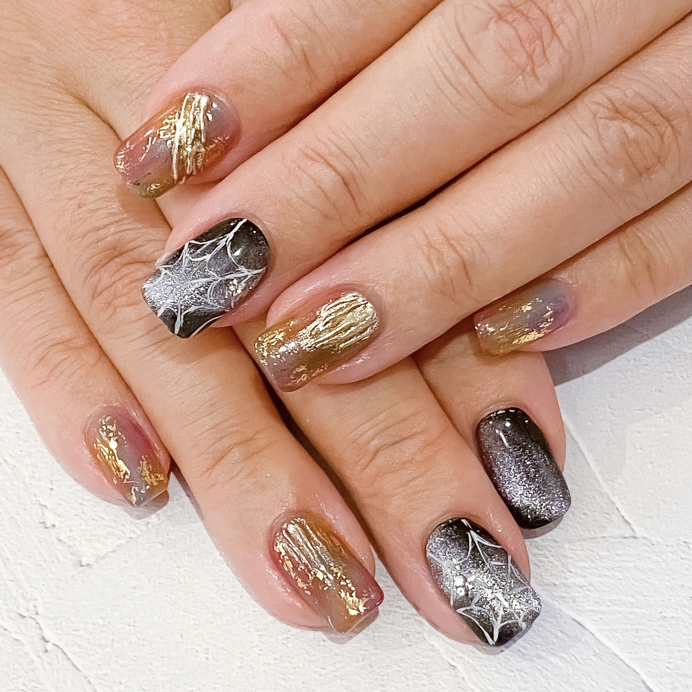 お好きなアートを一本追加してさりげなくハロウィンネイルにしたり、、