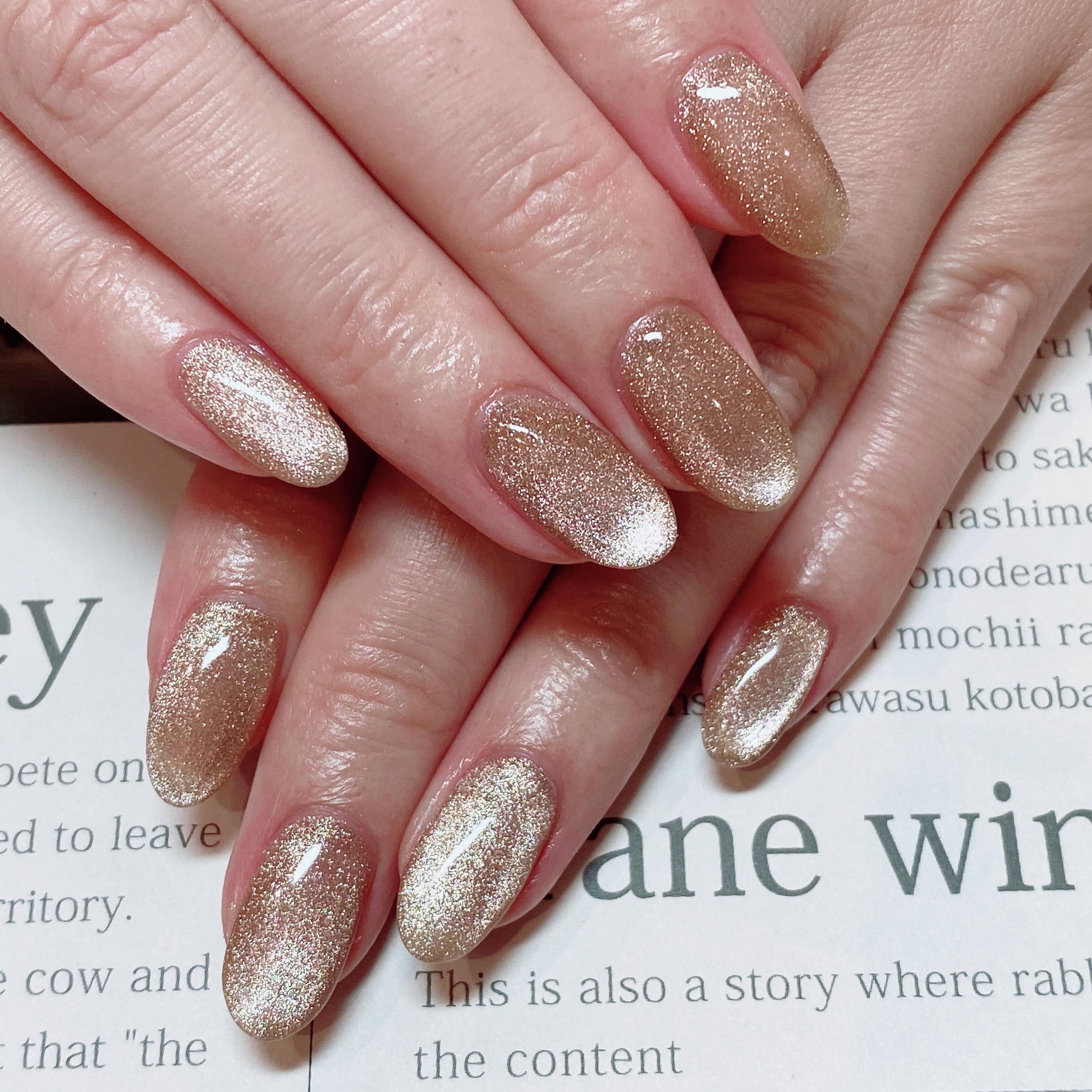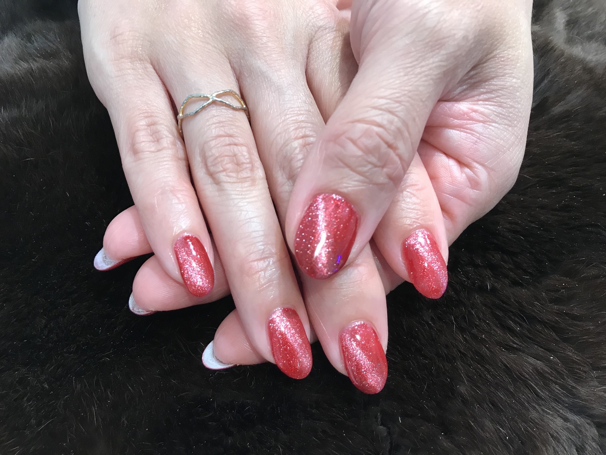 Footをギラギラの赤ラメにして、ハンドは赤のマグネットネイル!