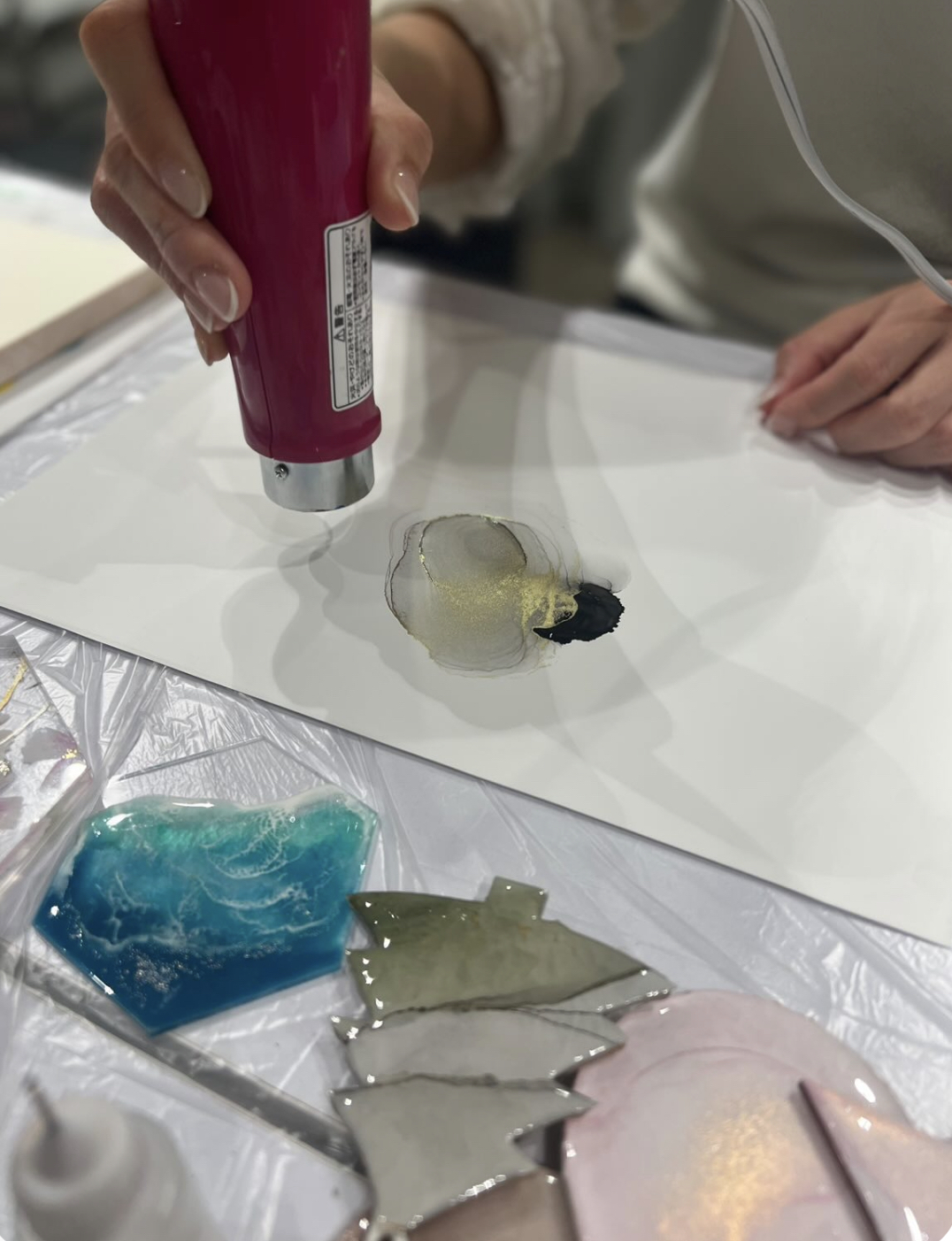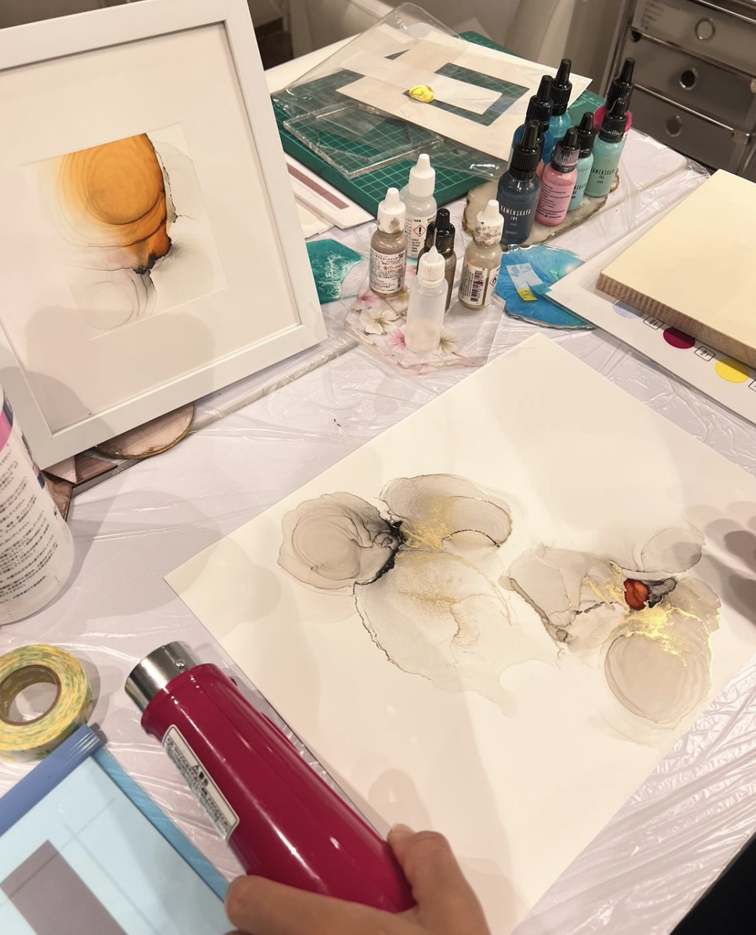 初めてアルコールインクアートに触れた私にでも、作品として形にする事が出来、
