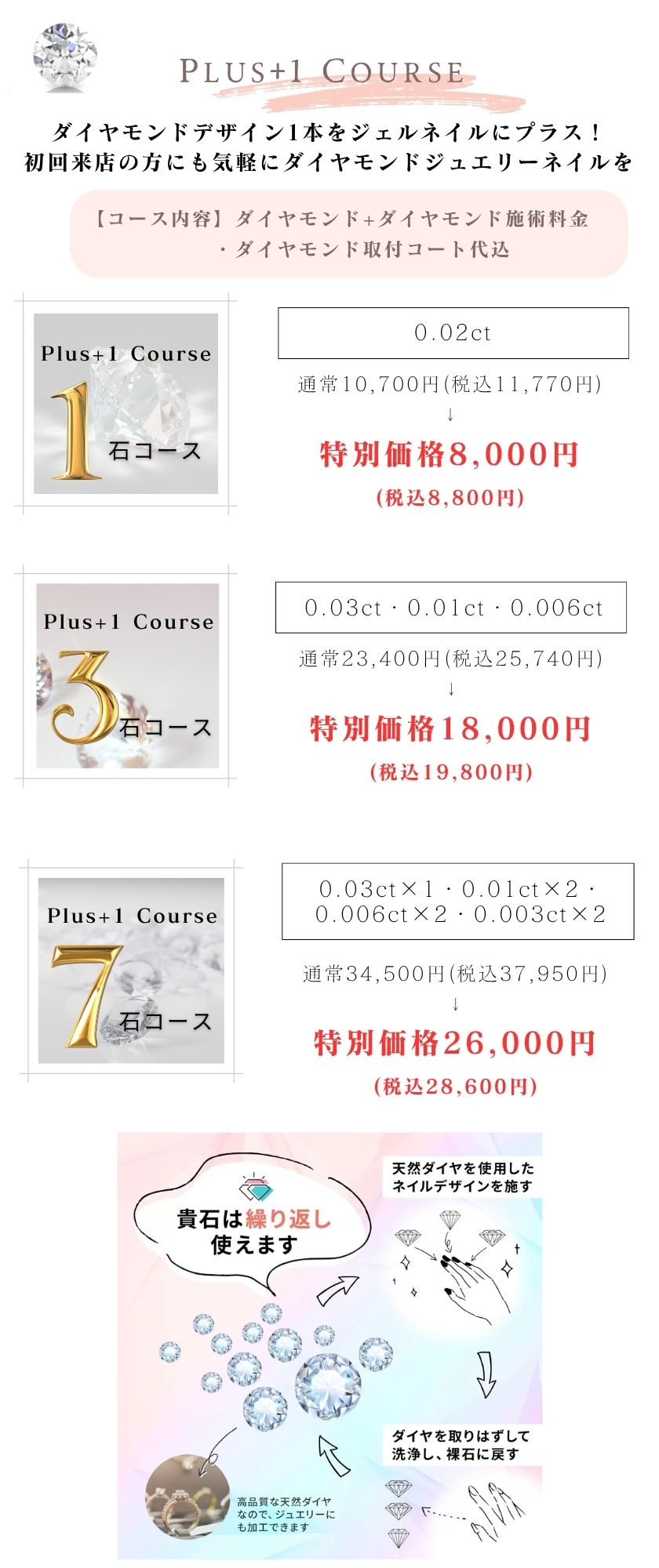 ※持ち込みのダイヤモンドをアートする場合は取付料金1石¥550となります。